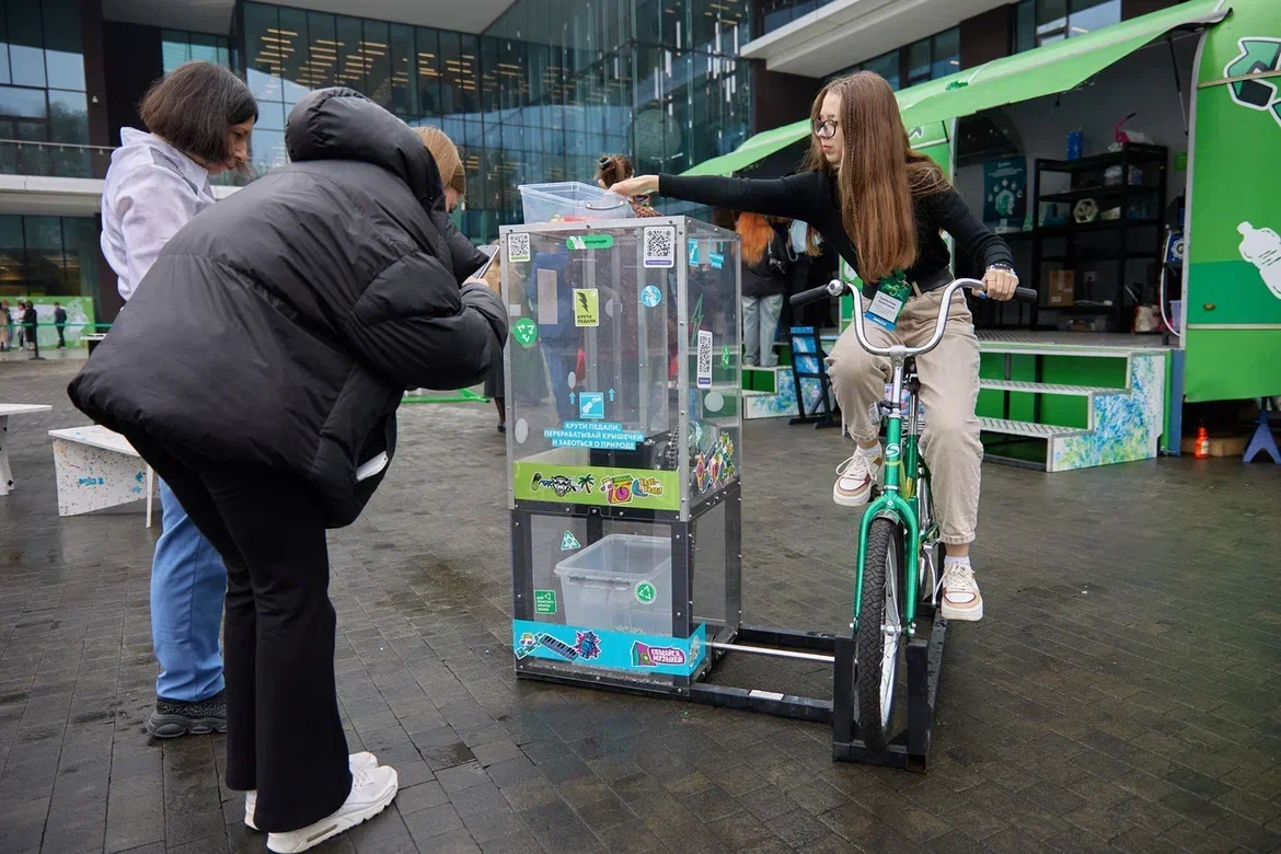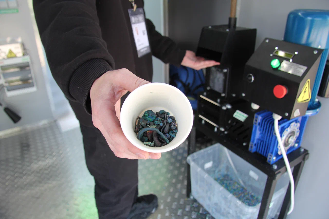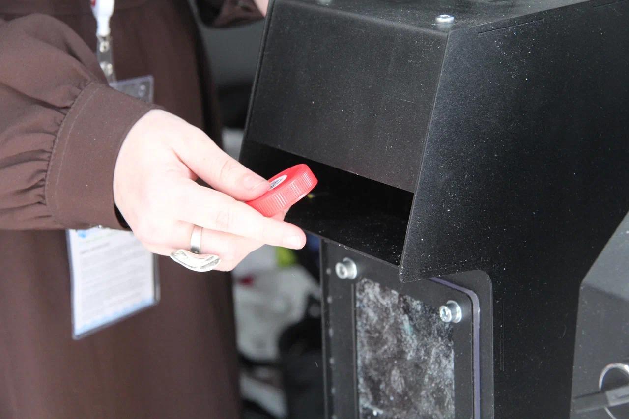 Предназначен для демонстрации процесса переработки/дробления пластиковых крышек, является точкой «притяжения» в общественных пространствах. Имеет поле для наружной рекламы.