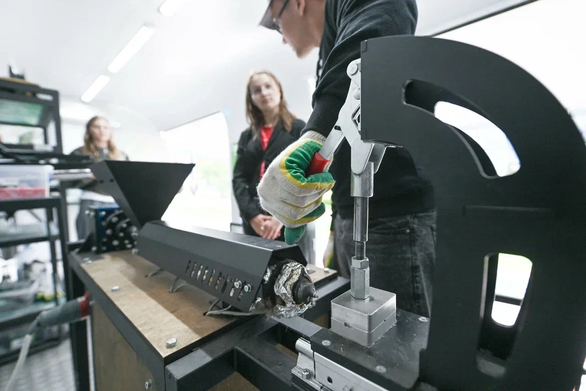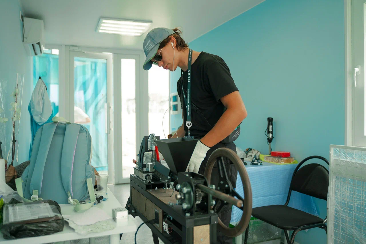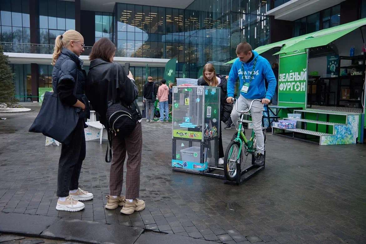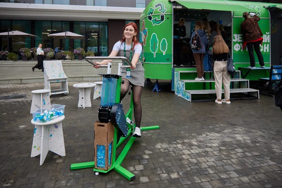 Предназначен для демонстрации процесса переработки/дробления пластиковых крышек, является точкой «притяжения» в общественных пространствах. Имеет поле для наружной рекламы.