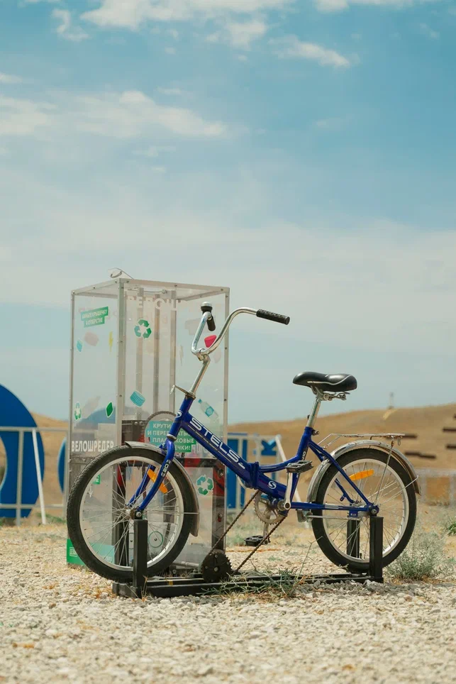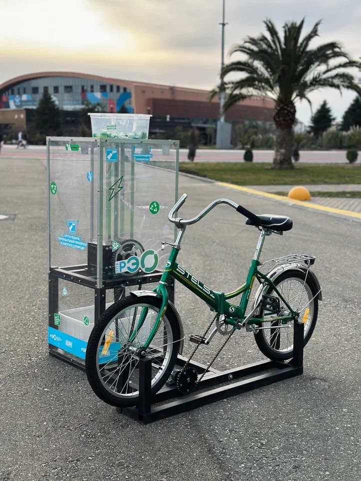 Обновленная версия Велошредера. Увеличена производительность за счет добавленного в конструкцию маховика для использования силы инерции, что позволяет измельчать крышки быстрее, а педали вращать стало ещё легче.