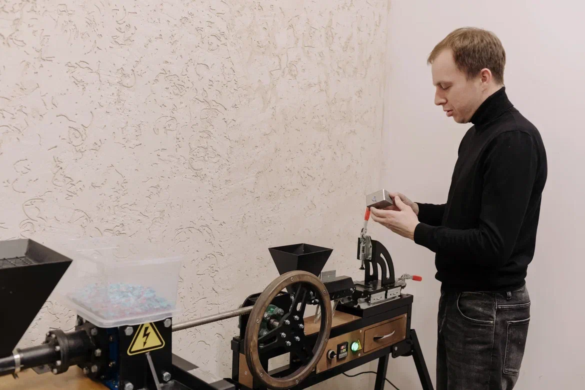 Оборудование для преобразование Пэт бутылки в нить для 3D принтера. Подходит для небольших производств и домашнего использования. Имеет небольшие габариты,что позволяет легко переносить и размещать где угодно.