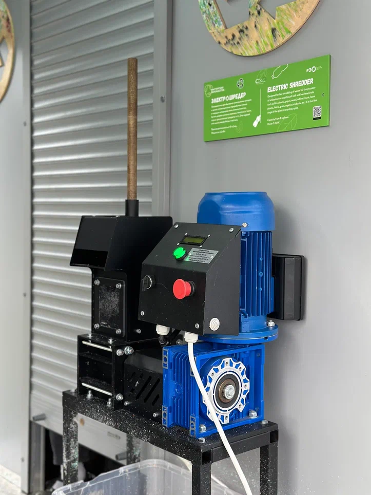Оборудование для дробление пластикового сырья. Эффективный и безопасный шредер оборудован бункером со съемным корпусом. Устанавливается на разборную металлическую раму. Мощность двигателя 2.2 кВ.